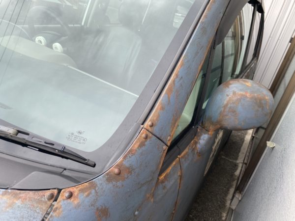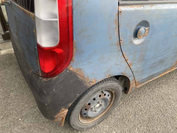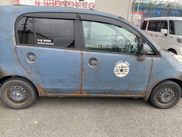 10年ほど山小屋の端で、放置してたかのような、サビ感、一瞬車検合格できるか不安でしたが、よく見ると、オーナー様が、はけで自作、