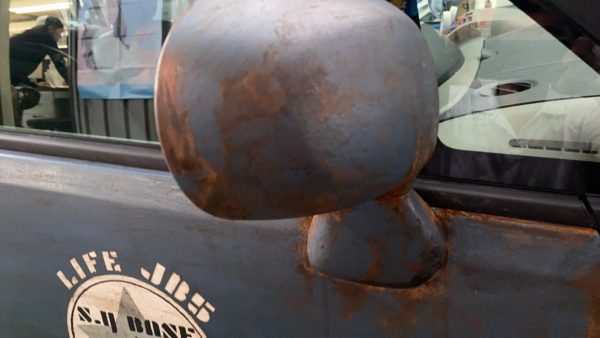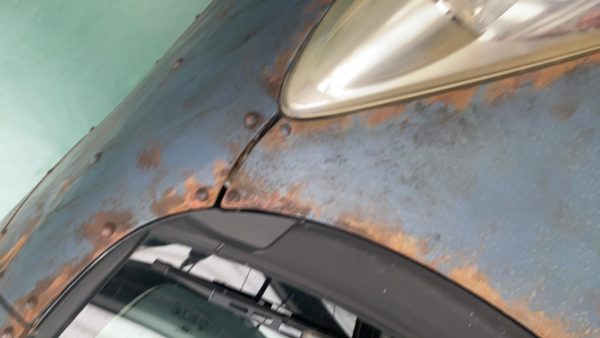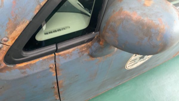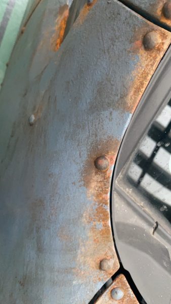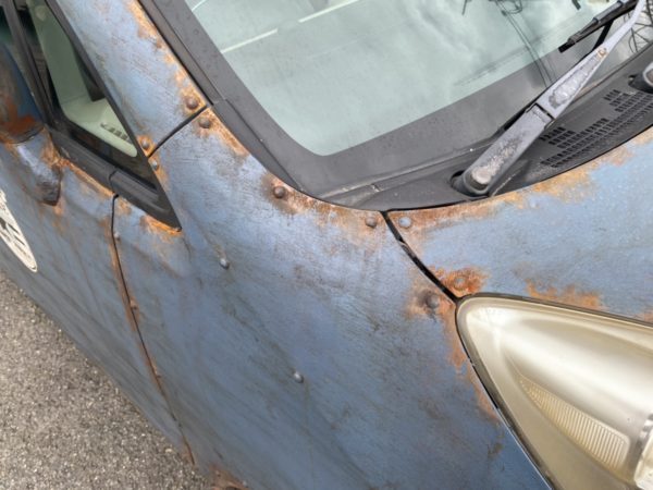 10年ほど山小屋の端で、放置してたかのような、サビ感、一瞬車検合格できるか不安でしたが、よく見ると、オーナー様が、はけで自作、
