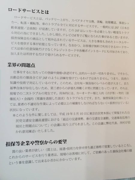 高速代は払わない・清掃費用は払わない・横転時のクレーンは払わない・2時搬送は払わない・搬送距離15Km以上は払わない