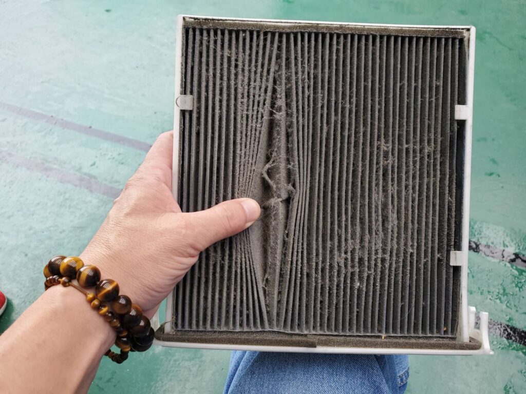 2020年7月17日 ウイッシュ 1日車検 朝預かりで、夕方引き取り! 修理・整備 2020.07.17 点検中 車検査終了! 底回り点検 エンジンルーム点検 エアコンフィルター フィルターが目詰まりしています。においやアレルギーの元